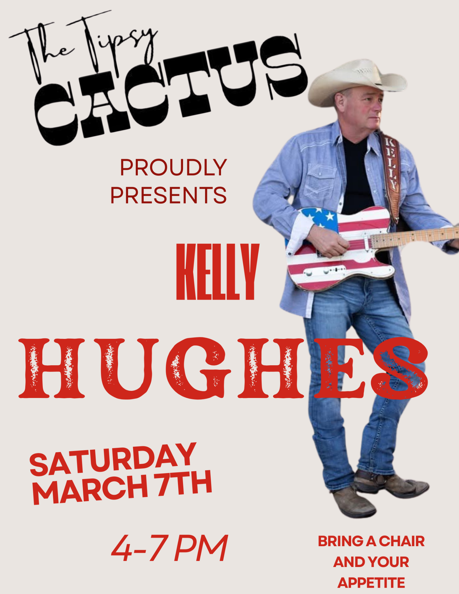 Kelly Hughes Band LIVE at The Tipsy Cactus Date Mar 07 2026 Expired! Time 4:00 pm - 7:00 pm Location The Tipsy Cactus 14200 E County 14th Street Share this event